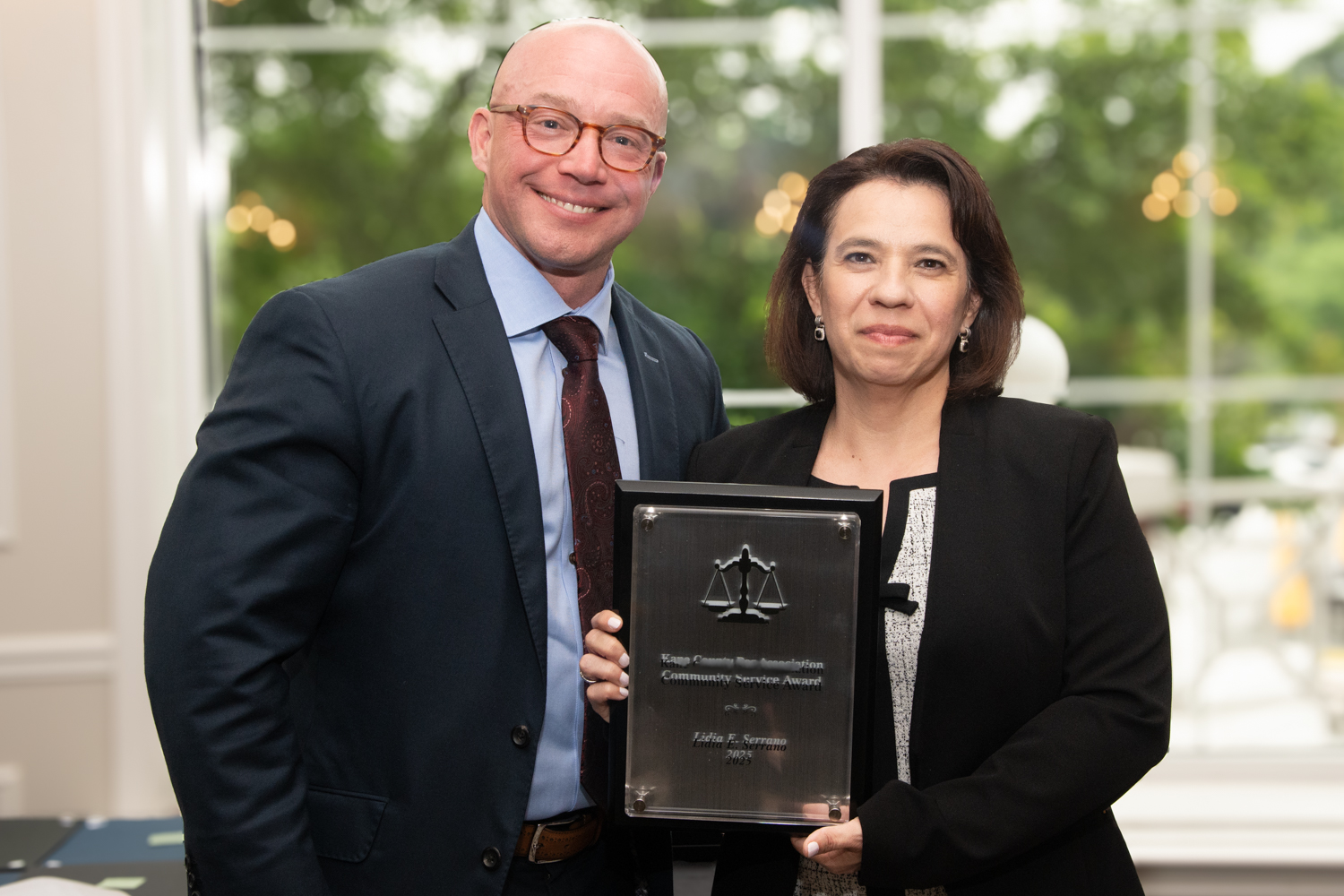 The Community Service Award is presented to a member of the Kane County Bar Association who has demonstrated a broad based involvement in the community, and who is an active member of the legal profession. The honorees have shown a firm commitment for working toward a better government and fostering civic improvements. They have impeccable character, a strong sense of family, and are held in high regard by their peers. The Kane County Bar Association Community Service Award is presented to a well-rounded individual who, through actions, has shown a true understanding of and a caring attitude toward the community in which they reside.